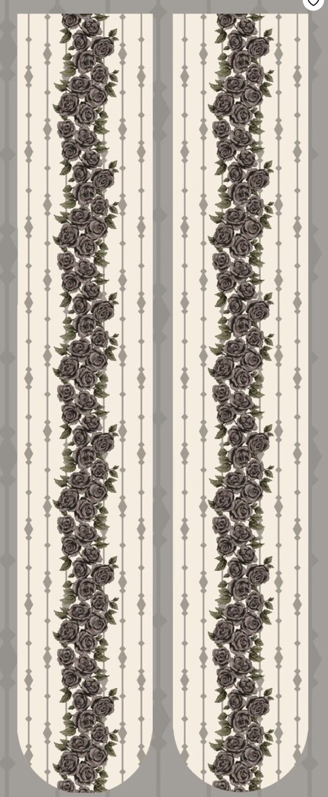 Tights: The tights worn with an outfit can also make it more dramatic and stylish. Good choices for the OTT gothic lolita style are opaque tights with a print that has a gothic motif, lace tights (perfect for an aristocratic appearance), or even solid black tights (not as obviously fancy, but sophisticated and complement clothing that already has a print).