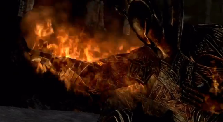 | The Chosen Undead links the fire, burning themselves alive. |